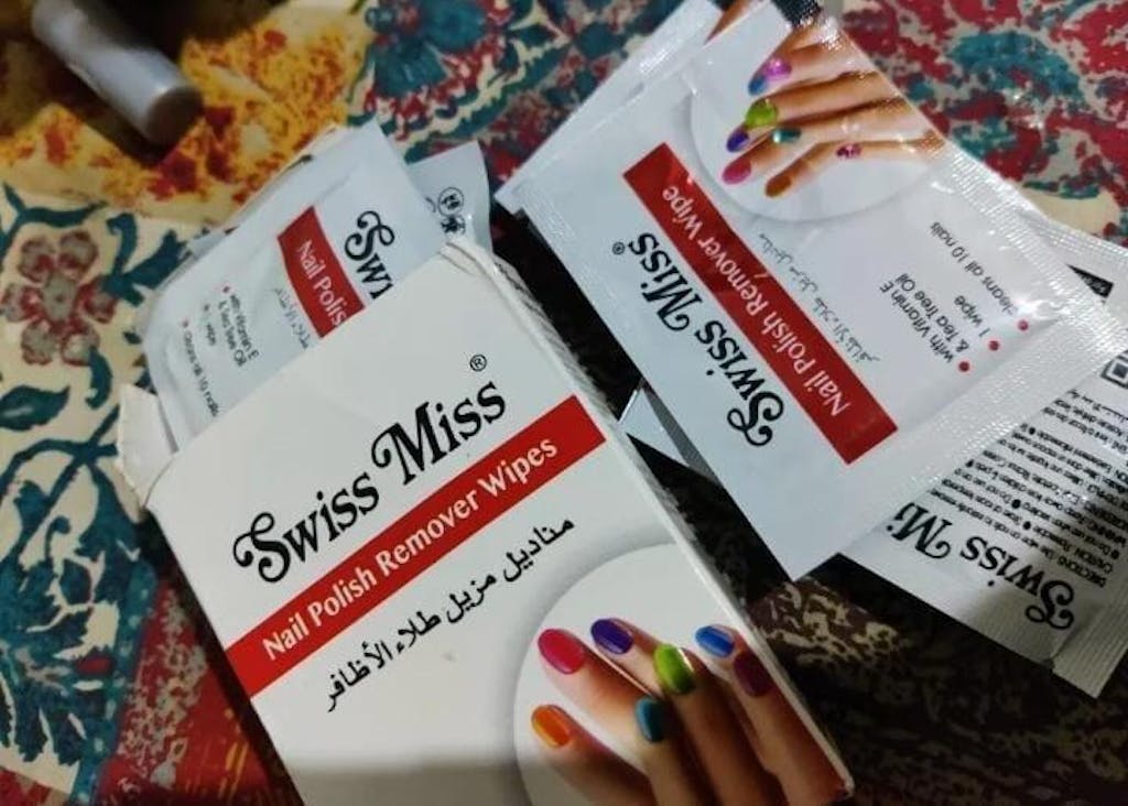 - Use Swiss miss remover pads to gently rub polish from all nails.